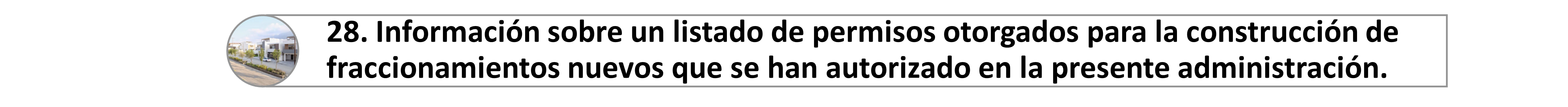 28. Información sobre un listado de permisos otorgados para la construcción de fraccionamientos nuevos que se han autorizado en la presente administración.