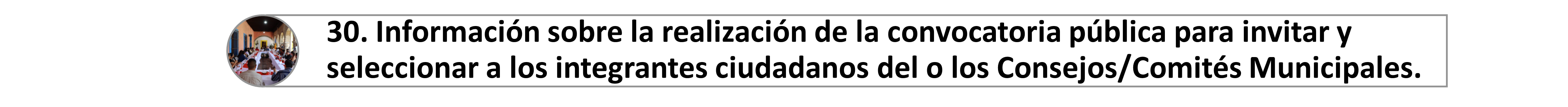 30. Información sobre la realización de la convocatoria pública para invitar y seleccionar a los integrantes ciudadanos del o los Consejos/Comités Municipales