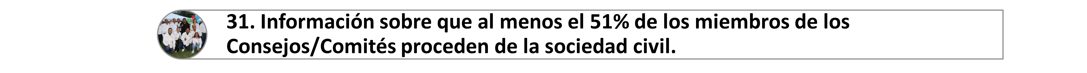31. Información sobre que al menos el 51% de los miembros de los Consejos/Comités proceden de la sociedad civil (no funcionario público de algún orden de gobierno u organismo público)