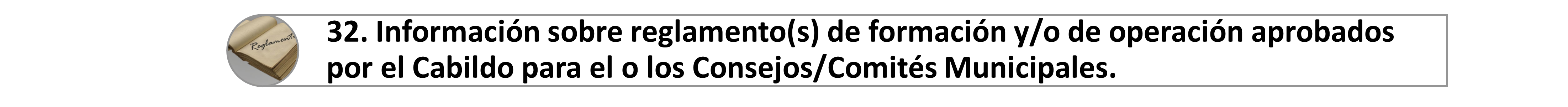 32. Información sobre la existencia de reglamento(s) de formación y/o de operación aprobados por el Cabildo para el o los Consejos/Comités Municipales e indican las reglas específicas para elegir a sus miembros