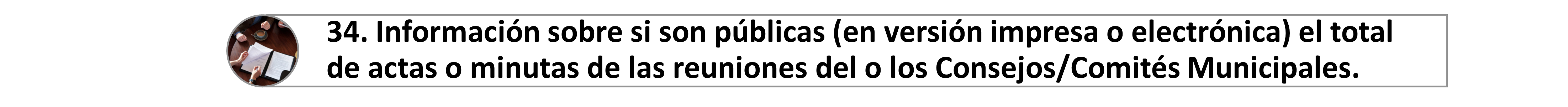34. Información sobre si son públicas (en versión impresa o electrónica) el total de actas o minutas de las reuniones del o los Consejos/Comités Municipales celebradas desde el inicio de la presente administración