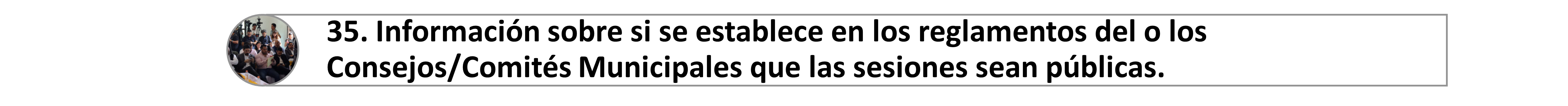 35. Información sobre si se establece en los reglamentos del o los Consejos/Comités Municipales que las sesiones sean públicas (con acceso para el ciudadano).