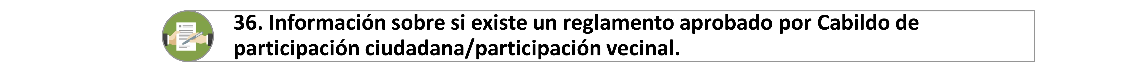 36. Información sobre si existe un reglamento aprobado por Cabildo de participación ciudadana/participación vecinal